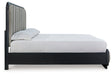 Rowanbeck King Upholstered Panel Bed with Mirrored Dresser
