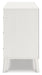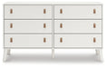 Dare to take minimalism to the max. This dresser has an air of sleek simplicity thanks to its white painted finish with subtle replicated wood grain. The magnificently mod splay legs are a compelling complement to its streamlined design. And with two sets of faux leather drawer pulls that allow you to customize the dresser to suit your space, there's no doubt about it: This contemporary piece is sure to become a classic.