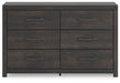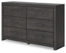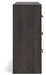 Details Made with engineered wood (MDF/particleboard/plywood) and decorative laminate for the right balance of affordability and durability, Charcoal finish over replicated oak grain with authentic touch, Decorative laminate replicates natural or man-made material surfaces with consistent color, pattern and texture, Large-scale dark colored handles, 6 smooth-gliding drawers, Drawer interiors are lined with a faux linen laminate for a clean, finished look, Safety is a top priority, clothing storage units are designed to meet the most current standard for stability, ASTM F 2057 (ASTM International), Drawers extend out to accommodate maximum access to drawer interior while maintaining safety, Minor assembly required