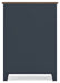 Details Made with hardwood solids, mindi wood veneer and MDF substrates, Two-tone finish features a dark slate blue with a light brown wood-tone top, Nickel-tone metal knobs, 4 drawers with fully finished interior, dovetail construction and heavy duty ball-bearing side glides