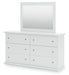 | Details | B139B47: Includes panel headboard/footboard and rails, Made with engineered wood (MDF/particleboard/plywood) and decorative laminate for the right balance of affordability and durability, Replicated solid white paint, Decorative laminate replicates natural or man-made material surfaces with consistent color, pattern and texture, Foundation/box spring required, sold separately, Mattress available, sold separately, Assembly required, B139B40: Includes dresser and mirror, Made of engineered wood (MDF/particleboard), Knobs with pewter-tone finish, Scalloped moulding, 6 smooth-operating drawers, Includes tipover restraint device, Mirror attaches to back of dresser; can also be mounted on wall horizontally or vertically, Safety is a top priority, clothing storage units are designed to meet the most current standard for stability, ASTM F 2057 (ASTM International), Drawers extend out to accommodate maximum access to drawer interior while maintaining safety, | |