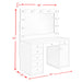 Every woman's dream lies right here in the Amia Vanity Set, the dressing table with a Hollywood mirror. Constructed of manufactured woods, it gives a symmetrical silhouette. Finished in a beautiful, glossy white color. The Amia 2pc Vanity Set includes mirror and multiple drawers for storage. The Amia vanity set also includes one power outlet, making it ideal for touching up your hair or even working on your laptop.