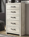 | Details | Made of engineered wood (MDF/particleboard) and decorative laminate, Wispy white finish over replicated oak grain with authentic touch, Large-scale hardware with dark finish, 5 smooth-gliding drawers, Drawer interiors are lined with a faux linen laminate for a clean, finished look, Safety is a top priority, clothing storage units are designed to meet the most current standard for stability, ASTM F 2057 (ASTM International), Drawers extend out to accommodate maximum access to drawer interior while maintaining safety | |