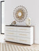 Looking to make a subtly striking statement in your bedroom? We've got you covered. This dresser's sophisticated two-tone treatment marries a warm brown finish over replicated walnut grain with a matte white finish. Rounded corners and a thick top radiate an air of modern panache, while sleek handles in a champagne finish add a sparkling touch to the spacious drawers. It’s a master class in contemporary yet comfortable character.