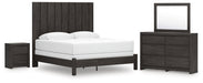 Details PCB3370B8: Includes headboard panel, headboard posts, footboard and rails, Made with engineered wood (MDF/particleboard/plywood) and decorative laminate for the right balance of affordability and durability , Dark charcoal finish over replicated oak grain, Decorative laminate replicates natural or man-made material surfaces with consistent color, pattern and texture, Foundation/box spring required, sold separately, Mattress available, sold separately, Assembly required, PCB3370B1: Includes dresser and mirror, Made with engineered wood (MDF/particleboard/plywood) and decorative laminate for the right balance of affordability and durability , Dark charcoal finish over replicated oak grain, Decorative laminate replicates natural or man-made material surfaces with consistent color, pattern and texture, Recessed hand grabs create hardware-less effect, 6 smooth-gliding drawers, Drawer interiors are lined with a faux linen laminate for a clean, finished look , Safety is a top priority, clothing storage units are designed to meet the most current standard for stability, ASTM F 2057 (ASTM International), Drawers extend out to accommodate maximum access to drawer interior while maintaining safety, Mirror attaches to back of dresser; can also be mounted on wall horizontally or vertically, Assembly required, PCB3370-92: Made with engineered wood (MDF/particleboard/plywood) and decorative laminate for the right balance of affordability and durability, Dark charcoal finish over replicated oak grain, Decorative laminate replicates natural or man-made material surfaces with consistent color, pattern and texture, Recessed hand grabs create hardware-less effect, 2 smooth-gliding drawers, Drawer interiors are lined with a faux linen laminate for a clean, finished look, 2 slim-profile USB-C charging ports, Power cord included; UL Listed, Assembly required,