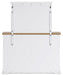 | Details | B844B4: Includes panel headboard, storage footboard, rails and roll slats, Footboard made with hardwood solids, MDF substrates and butcher block oak veneer, Headboard and rails made with hardwood solids and MDF substrates, White finish, Headboard with inset black metal barn sash, 2 drawers in footboard with fully finished interior, dovetail construction and ball-bearing side glides, Pulls with matte black finish, Bed does not require a foundation/box spring, Mattress available, sold separately, Assembly required, B844B1: Includes dresser and mirror, Made with hardwood solids, MDF substrates and butcher block oak veneer, Dresser with 2-tone finish (white finish; butcher block oak veneer with natural finish), Pulls with matte black finish, 10 spacious drawers with fully finished interiors (top drawers felt lined), dovetail construction and ball-bearing side glides , Drawers with inset picture fronts, Mirror attaches to back of dresser, | |