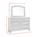 The dresser features seven spacious drawers, and one hidden in the top middle. An arched, bevel edge mirror completes this set.