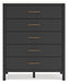 Details B2616B2: Includes upholstered panel headboard, panel footboard with rails and roll slats, Made with engineered wood (MDF/particleboard/plywood) and decorative laminate for the right balance of affordability and durability, Matte black finish with subtle replicated wood grain, Decorative laminate replicates natural or man-made material surfaces with consistent color, pattern and texture , Polyester upholstery, Bed does not require additional foundation/box spring; accommodates most zero clearance adjustable bases, Mattress available, sold separately, Assembly required, B2616B1: Includes dresser and mirror, Made with engineered wood (MDF/particleboard/plywood) and decorative laminate for the right balance of affordability and durability, Matte black finish with subtle replicated wood grain, Replicated white marble top, Decorative laminate replicates natural or man-made material surfaces with consistent color, pattern and texture , Handles with light bronze-tone finish, 6 smooth-gliding drawers , Drawer interiors are lined with a faux linen laminate for a clean, finished look, Mirror attaches to back of dresser; can also be mounted on wall horizontally or vertically, Safety is a top priority, clothing storage units are designed to meet the most current standard for stability, ASTM F 2057 (ASTM International), Drawers extend out to accommodate maximum access to drawer interior while maintaining safety, Minor assembly required, B2616-345: Made with engineered wood (MDF/particleboard/plywood) and decorative laminate for the right balance of affordability and durability, Matte black finish with subtle replicated wood grain, Replicated white marble top, Decorative laminate replicates natural or man-made material surfaces with consistent color, pattern and texture, Handles with light bronze-tone finish, 5 smooth-gliding drawers, Drawer interiors are lined with a faux linen laminate for a clean, finished look, Safety is a top priority, clothing storage units are designed to meet the most current standard for stability, ASTM F 2057 (ASTM International), Drawers extend out to accommodate maximum access to drawer interior while maintaining safety, Minor assembly required, B2616-91: Made with engineered wood (MDF/particleboard/plywood) and decorative laminate for the right balance of affordability and durability, Matte black finish with subtle replicated wood grain, Replicated white marble top, Decorative laminate replicates natural or man-made material surfaces with consistent color, pattern and texture, Handles with light bronze-tone finish, 1 smooth-gliding drawer, Drawer interior is lined with a faux linen laminate for a clean, finished look, Open shelf, USB and Qi wireless charging options, Ambient lighting under the top, Power cord included; UL Listed, Minor assembly required,