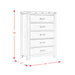 The Wade 5-Drawer Chest is the ultimate chest for your home! This chest comes with five, spacious drawers; perfect for easily keeping all of your belongings neatly stored away. The bottom drawer features a dust proofing layer to help protect your belongings. The drawer pulls and trim along the top of the chest are both metal with a black finish. Along the trim on the chest are decorative bolts, adding a little extra flair. This chest is finished in a neutral gray, making it easy to pair with any existing decor or to find an excuse to completely redo your bedroom. Please note wood grains vary piece by piece and will not look exactly like the picture.