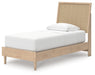 Clean-lined and contemporary—but far from stark—this twin panel bed is a fresh style awakening. Pairing a light finish with replicated oak grain and textured beige details that replicate the look of cane, its mixed materials bring a naturally versatile vibe to your bedroom. Talk about style with added dimension. The bed's simplicity plays perfectly with the modern aesthetic and is the stuff dreams are made of.