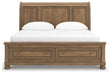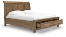 A relaxed take on casual traditional design, this California king storage sleigh bed strikes a comfy pose with a classic sensibility. Its timeless design and chestnut brown wood tone create a welcoming retreat tailored to your laid-back lifestyle. Metal knobs in an aged pewter color subtly dress up footboard drawers packed with storage possibilities. Now there’s a bed with staying power.