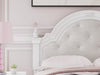 Fit for a princess. This full upholstered panel storage bed’s crisp matte white finish pairs with charming ornate beading details and sumptuous button-tufted upholstery—perfect for your girly girl. Spacious storage drawers neatly tuck away bedroom essentials, while decorative ball tops and multicolored LED lighting in the headboard are the crowning touches to make your little one feel like royalty.