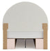 Pretty in pink. This full upholstered panel bed with storage keeps the spirit of your home’s modern aesthetic while suiting all your young one’s needs. Its cozy-cute upholstery and subtle blush finish bring a playful, charming vibe to bedtime. Made for her and styled for you, it’s a lovely addition to a beautifully chic child’s bedroom.