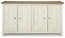 Whether your style is cottage chic, boho inspired or uniquely eclectic, this accent cabinet is sure to look right at home. Standout elements include raised panel door fronts that are a work of art. Wonderfully timeworn in antique white, this 4-door cabinet is topped with a warm brown finish for two-tone interest. Two adjustable shelves add to its practicality.
