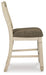 The beauty of this upholstered bar stool is something to savor. Designed to serve up comfort and flair, this rake-back bar stool entices with a cushioned seat covered in a heavy woven fabric that complements the antiqued white finish.
