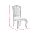 The Madison Park Side Chair epitomizes elegance with its rich walnut finish, infusing warmth and sophistication into any dining space. Ornate carvings throughout the chair exude timeless charm, while silver nailhead trim on the chair back adds refined elegance and a touch of luxury. Carved legs showcase intricate beauty, enhancing its classic appeal. Upholstered in tufted beige fabric, the chair offers a plush and inviting feel, ensuring comfort during meals and gatherings. With its traditional design that never goes out of style, the Madison Park Side Chair is a perfect blend of timeless beauty and functional comfort for your dining room.