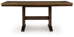 Add a dash of enduring design to your home with this counter height dining extension table. Its two-tone finish contrasts light and dark chestnut finishes for a touch of casual rustic charm that’s both current and timeless. And how about that beautiful double trestle base? A simply striking choice, this table lends a seamless blend of form and function wherever friends and family gather. Drop in the two extension leaves, and you'll have room for absolutely everyone.