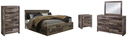 Derekson King Panel Bed with 4 Storage Drawers with Mirrored Dresser, Chest and Nightstand