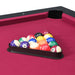 The Ajax Billiard Table is the centerpiece of your game room. This table is constructed with black laminate veneer that surrounds the table and has accents of a white laminate stripe for a modern look. Taking it a step further, the burgundy table felt provides fresh update to the standard green table felt. Six molded pockets, line outer edge of the table for game play. Included with the table are one set of billiard balls, cue ball, felt brush and racking triangle. So, call your family and friends over for an exciting game of eight ball!