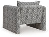 This fashion-forward accent chair keeps comfort and contemporary style at top of mind. Its eye-catching black and white geometric pattern makes a bold statement while remaining versatile enough to pair with other neutrals or pops of color. A low-profile back and streamlined silhouette lend a sophisticated, trend-right vibe to your space.