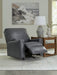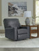 | Details | Pull tab reclining motion, Gentle rocking motion, Corner-blocked frame, Attached cushions, High-quality foam cushions wrapped in poly fiber, 100% top grain leather covers inside areas such as the back, seat and arm cushions; skillfully matched faux leather covers the remaining areas, Corrected grain leather; two-tone sauvage effect enhances the depth of the color, Due to its natural origin, real leather can show individual characteristics such as healed scars, growth marks, grain variation and shade variation, Natural variations make each hide unique and do not detract from the wearing qualities of leather, Exposed feet with faux wood finish | |