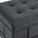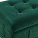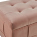 The Crosby Tufted Storage Ottoman is the missing piece for your home! This storage ottoman features a tufted lid, adding extra flair to this already stunning piece. Detailed square stitching and piping along the ottoman elevates it to the next level. Easily store away blankets in the available storage space. The velvet fabric complements the natural finish of the wooden feet beautifully.