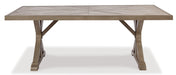 Sporting an easy-on-the-eyes look inspired by driftwood, this dining table elevates the art of alfresco living. Beautiful and durable enough for indoor and outdoor use, the high-style/low maintenance table charms with X-leg farmhouse styling, while its thick porcelain tabletop adds a natural complement.