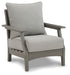 It’s the dawn of a new day for gray. Embrace the style trend with this outdoor lounge chair. Crafted of HDPE material that combines the exceptional durability and weather resistance you need with the “wood look” you love, this comfortably cushioned outdoor chair takes outdoor living to a whole new level. Rest assured, the thick seat and back cushions are wrapped in our exclusive Nuvella® high-performance fabric that’s fade resistant, stain resistant and a breeze to clean.