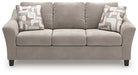 Subtle in color, big on style possibilities. This sofa is a transitional take on everyday comfort. Its soft-to-the-touch upholstery keeps you cozy as you lounge, and the neutral hue is a perfect canvas for adding your own fashionable flair. Tidying up after kids or pets? It's easy to clean under and between the removable cushions.
