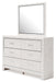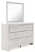 Details Made of engineered wood (MDF/particleboard) and decorative laminate, Light finish with subtle pearl effect over replicated cedar grain with authentic touch, Large scale chrome-tone handles with mosaic details, Faceted chrome-tone accents, Six smooth-gliding drawers with faux linen lining, Mirror attaches to back of dresser, Safety is a top priority, clothing storage units are designed to meet the most current standard for stability, ASTM F 2057 (ASTM International), Drawers extend out to accommodate maximum access to drawer interior while maintaining safety, Assembly required