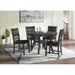 The Amherst Grey Dining is the perfect addition to your dining room. The round dining table features a unique base that will update any dining space, whether it be large or small. The wired brushed, grey frame is a transitional color that allows you to easily pair this set with your existing decor. The chairs feature a solid, upholstered back and seat with a foam cushion filling. This set will keep you comfortable during even the longest of dinners or game nights.