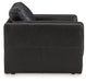 Keen on crisp, contemporary design? Adore the pleasure of leather? Look no further. This oversized chair satisfies on every level. Richly textured and decadently supple, the plush cushions are wrapped with expertly matched leather and faux leather upholstery in an on-trend onyx tone. Sleek double-padded arms and a low, clean-lined profile complete the chair's simply chic appeal.