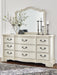 Details Includes dresser and mirror, Made with hardwood solids, spruce veneer, MDF substrates and cast resin components, Antiqued white painted finish, 9 drawers with fully finished interiors, French and English dovetail construction and ball-bearing side glides, Metal bar pulls with aged pewter-tone finish, Mirror attaches to back of dresser