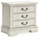 Add a touch of romance to your bedroom with this nightstand. Its antiqued white painted finish and serpentine-shaped silhouette are the definition of easy elegance. The nightstand's three spacious drawers accommodate bedside essentials, while an integrated power outlet and USB charging keep up with your high-tech lifestyle.
