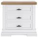 | Details | Made with hardwood solids, MDF substrates and butcher block oak veneer, 2-tone finish (white finish; butcher block oak veneer with natural finish), Pulls with matte black finish, 3 spacious drawers with fully finished interiors (top drawers felt lined), dovetail construction and ball-bearing side glides, 110V power supply with dual USB charging ports, Power cord included; UL Listed, Drawers with inset picture frame fronts | |
