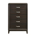 Sleek and beautiful — a chest piece with simple design that will complement any bedroom. The five drawers provide extra storage for personal belongings to be put away and secured. Place anywhere in the room to add that extra layer of tidiness and organization in a contemporary style.
