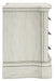 Details B980B5: Includes headboard, footboard and rails, Made with hardwood solids, spruce veneer, MDF substrates and cast resin components , Antiqued white painted finish, Polyester upholstery, Button tufting, Foundation/box spring required, sold separately, Mattress available, sold separately, Assembly required, B980B1: Includes dresser and mirror, Made with hardwood solids, spruce veneer, MDF substrates and cast resin components, Antiqued white painted finish, 9 drawers with fully finished interiors, French and English dovetail construction and ball-bearing side glides, Metal bar pulls with aged pewter-tone finish, Mirror attaches to back of dresser, B980-93: Made with hardwood solids, spruce veneer, MDF substrates and cast resin components, Antiqued white painted finish, 3 drawers with fully finished interiors, French and English dovetail construction and ball-bearing side glides, Metal bar pulls with aged pewter-tone finish, 110V power supply with dual USB charging ports, Power cord included; UL Listed,