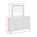 The Canterbury Dresser and Mirror Set exudes timeless elegance with its sleek smooth finish on rich veneer, blending modern and classic design. The ball bearing drawer glides ensure smooth, quiet operation, while refined brushed nickel handles add sophistication. Stylish inset panel fronts and sophisticated beveled edges enhance visual appeal, making this set a stunning focal point in any bedroom. The graceful beveled mirror completes the ensemble, adding charm and functionality. The Canterbury Dresser and Mirror Set perfectly combines functionality and elegance, bringing style and luxury to your living space.