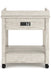 | Details | Made of pine veneers, pine wood and engineered wood, Distressed whitewash finish, 2 smooth-gliding drawers with dovetail construction, 2 open shelves, Vintage patinated bronze-color hardware, Casters for mobility, 2 electrical outlets and USB charging ports, Power cord included; UL Listed, Assembly required | |
