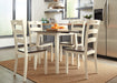 Turn your eat-in kitchen or dining space into a cottage-chic retreat with this round dining table set. Two-tone finish serves up a double helping of charm. Chairs' pierced ladderback design is equally sweet and sophisticated.