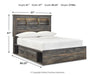 Includes bookcase headboard, footboard, 2 underbed storage units, rails and wood roll slats, Made of engineered wood (MDF/particleboard) and decorative laminate, Brown rustic finish with burnt orange and teal accents in a replicated wood grain with authentic touch, Footboard with 4 drawers and 4 open cubbies that each accommodate 10.5"W x 10.5"D x 11"H cube storage bin (not provided), Headboard includes a dimming LED light; 3 open cubbies, Dark-tone industrial hardware, Bed does not require additional foundation/box spring; accommodates most zero clearance adjustable bases with the addition of a bunkie board, Mattress available, sold separately, Assembly required |