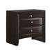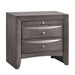 The Emily 2-Drawer Nightstand is the only bedside table youll ever need! This nightstand comes with two, spacious drawers to store away all of your bedside necessities. The nightstand also features a pull out tray, perfect for keeping your favorite book in place. A dust proofing layer on the bottom drawer helps protect your belongings. Finished metal drawer knobs pair beautifully with the weathered finish. Sleek, clean lines makes this contemporary design a staple in your home for years to come.