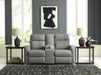 | Details | Dual-sided recliner; middle seat remains stationary, Pull tab reclining motion, Corner-blocked frame with metal reinforced seat, Attached cushions, High-quality foam cushions wrapped in poly fiber, Polyester upholstery, Center console with 2 cup holders and hidden storage | |