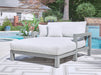 Details Made with aluminum, All-weather foam cushion core wrapped in soft polyester, Zippered cushions and throw pillows covered in solution-dyed high-performance fabric, Nuvella® is an outdoor fabric that can be cleaned and offers UV resistance, Clean fabric with mild soap and water, let air dry; for stubborn stains, use a solution of 4 oz. bleach to 28 oz. water, Stainless steel hardware, Designed to withstand the harsh elements of the outdoors, 2 throw pillows included, Assembly required