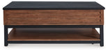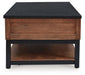 Double down on casual chic with the two-tone look of this lift-top coffee table. Its warm brown and matte black finishes reflect your eye for modern design. The trend-right slatted styling brings added charm. And with a handy lift top, working from home or catching up on a show with dinner is a breeze.