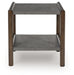 Master the art of mixed-material design with this end table. Sporting an urban vibe, its faux cement lends an industrial edge to the contrasting dark brown finish. For a functional touch, a lower shelf showcases your decor in style. Detailed mouldings on the sides add that much more cool character.