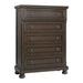 The Kingston 5-Drawer Chest is the perfect addition to your bedroom! This bedroom chest comes with five, spacious drawers, perfect for keeping all of your belongings neatly and properly stored away. Skillful craftsmanship is shown in dovetailed drawer boxes, and solid pine wood with a cherry veneer enhance durability. The top drawer is felt-lined and will keep your delicate items in perfect condition. Thanks to its traditional design and warm, brown finish, this chest will be a staple in your home year after year.