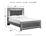 | Details | Includes headboard, footboard and side rails, Made of engineered wood (MDF/particleboard) and decorative laminate, Gray finish with replicated wood grain, Faux leather upholstery, Faux crystal and faceted chrome-tone metal accents, Accent LED lights with remote to control color and brightness, Power cord included; UL Listed, Foundation/box spring required, sold separately, Mattress available, sold separately, Assembly required, Bed is compatible with an adjustable base | |