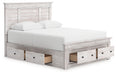 | Details | Includes panel headboard, storage footboard, 2 under bed storage units and roll slats , Made with engineered wood (MDF/particleboard/plywood) and decorative laminate for the right balance of affordability and durability, Whitewash replicated worn through paint over replicated wood grain with authentic touch, Decorative laminate replicates natural or man-made material surfaces with consistent color, pattern and texture, Handles with dark bronze-tone finish, 6 smooth-gliding storage drawers, Bed does not require additional foundation/box spring; accommodates most zero clearance adjustable bases with the addition of a bunkie board , Mattress available, sold separately, Assembly required | |