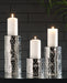 Details Set of 3, Glazed ceramic, Silvertone finish, Holds 3" pillar candles (not included)